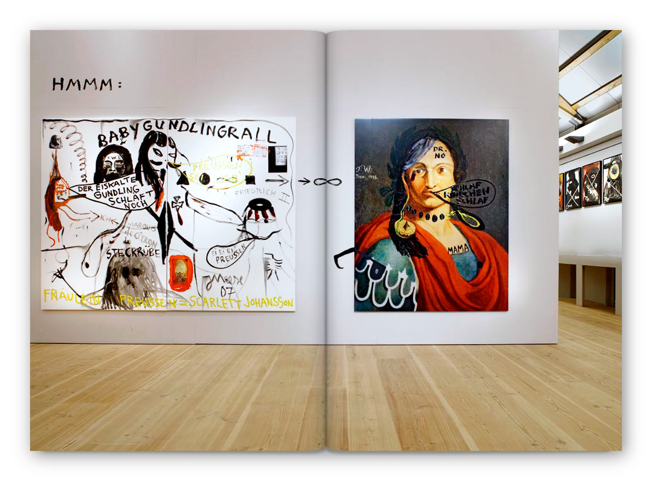 Jonathan Meese: Gundling Meese ErzstaatKlappenbroschur, 16,5 × 23,5 cm, 96 Seiten.Stiftung Schloss Neuhardenberg / Walther König 2007.{Gestaltung, Bildbearbeitung, Typografie}