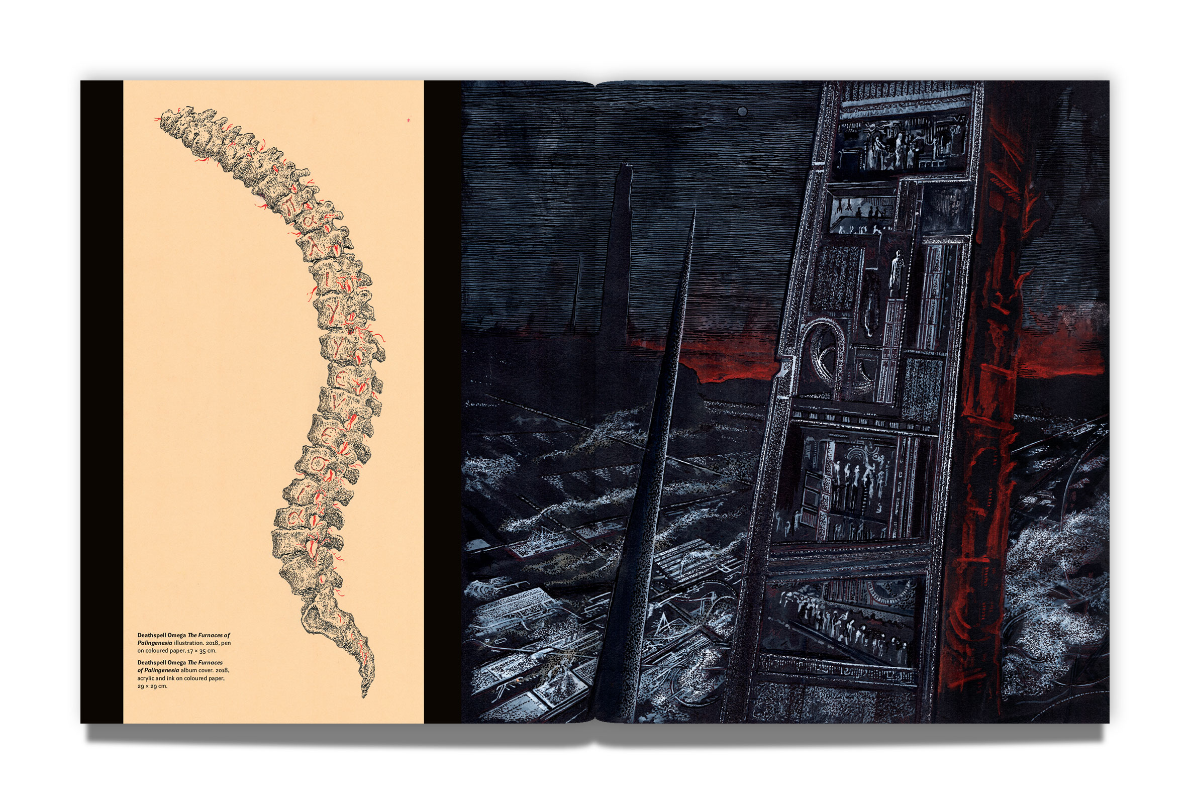 Timo KetolaFesteinband mit Blindprägung, 24 × 30 cm, 480 Seiten.Ajna Bound/Noevdia 2025. ISBN 978-1-7348950-2-5.{Gestaltung, Bildbearbeitung, Typografie}