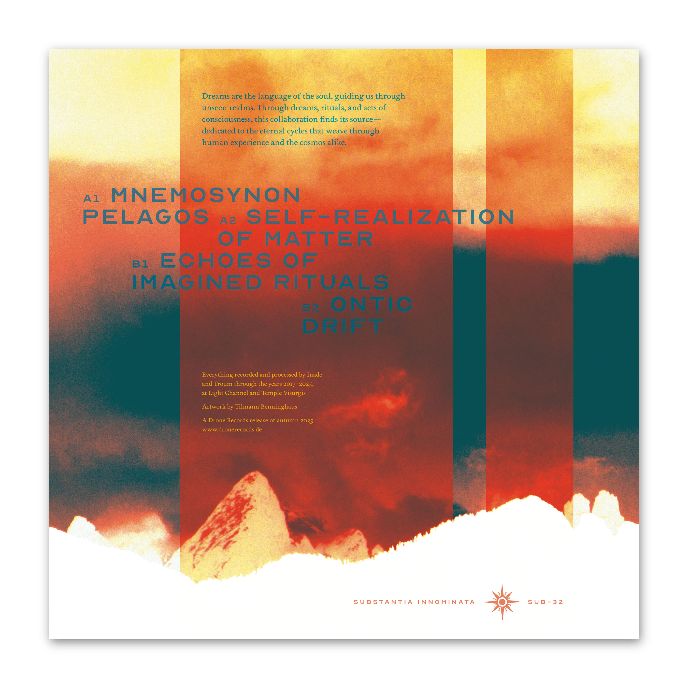 Inade & Troum: To Pan Eon10"-Cover. Drone Records 2026.{Gestaltung, Fotografie, Bildbearbeitung, Typografie}
