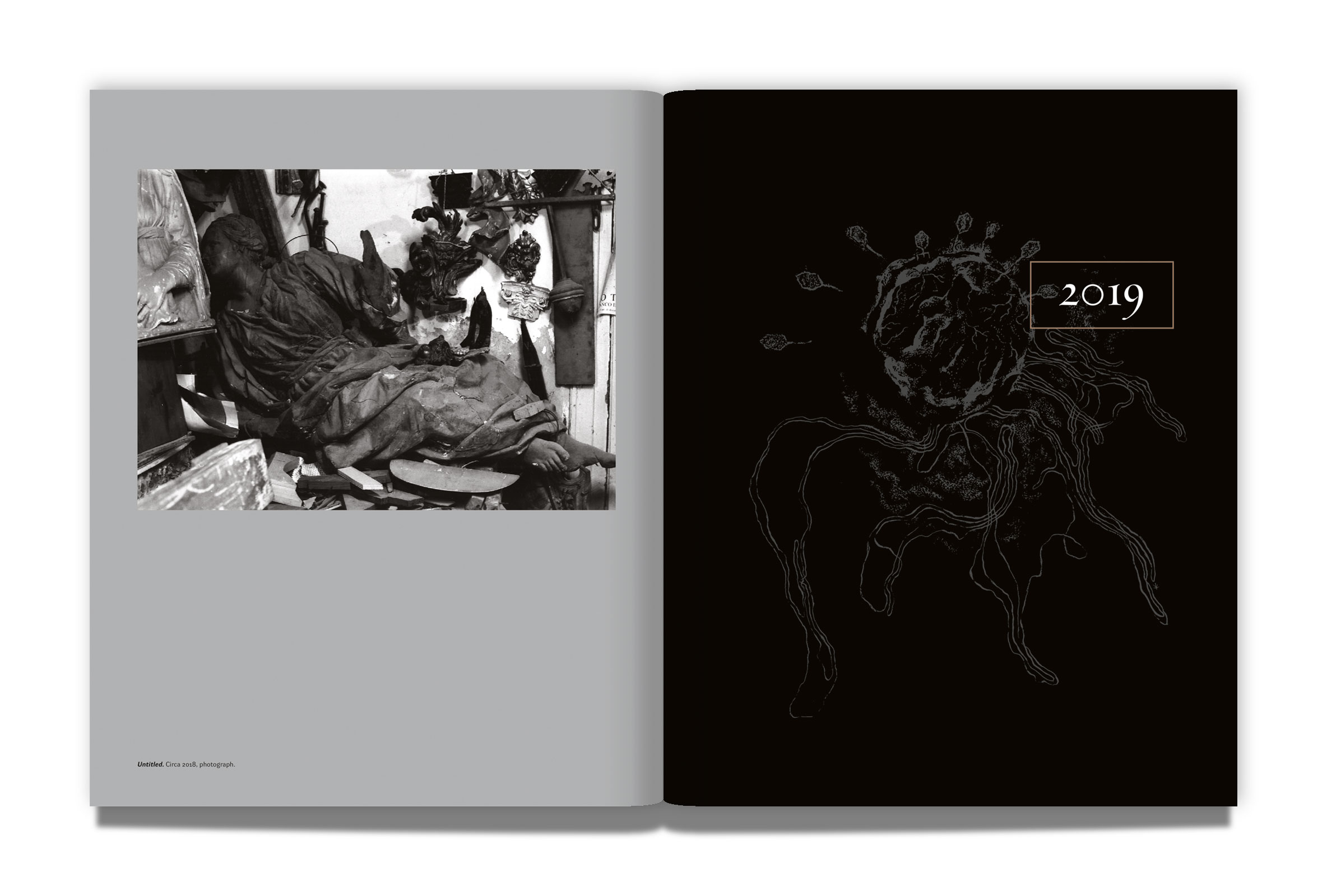 Timo KetolaFesteinband mit Blindprägung, 24 × 30 cm, 480 Seiten.Ajna Bound/Noevdia 2025. ISBN 978-1-7348950-2-5.{Gestaltung, Bildbearbeitung, Typografie}